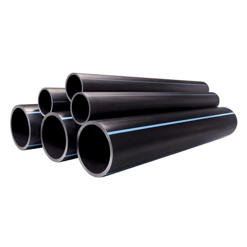 Водопровод из ПНД черного цвета с синими продольными полосами. Из-за яркого окраса их легко обнаружить среди прочих труб для разного назначения. Это значительно упрощает процесс работы.