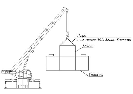 Для работы с резервуаром допустимо применять только полимерные стропы шириной от 100 мм. Применение стальных строп категорически запрещено, так как это может повредить поверхность оборудования.